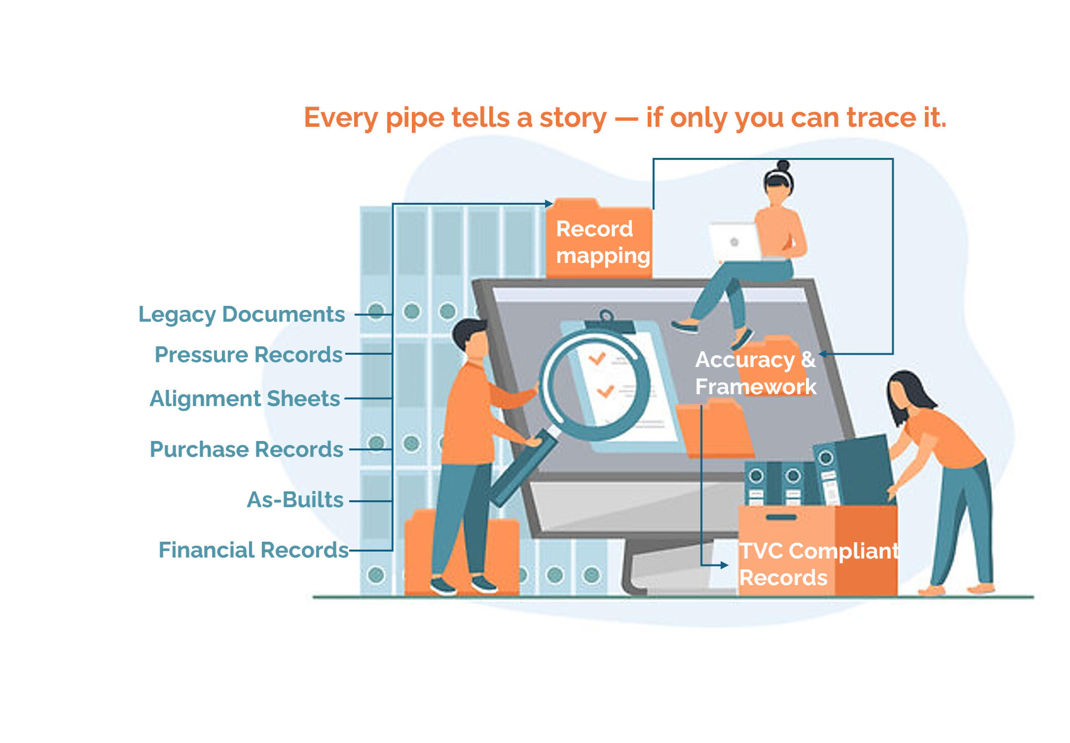 โ Pulled material test reports, pressure test records, and as-builts (archival research)